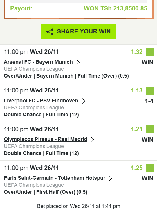 Bayern Munich are not the favorites playing Arsenal at home, so Double Chance - Home/Away is a safe pick from keka app tipsters. Over 2.5 total goals is another safe pick for this big match today.